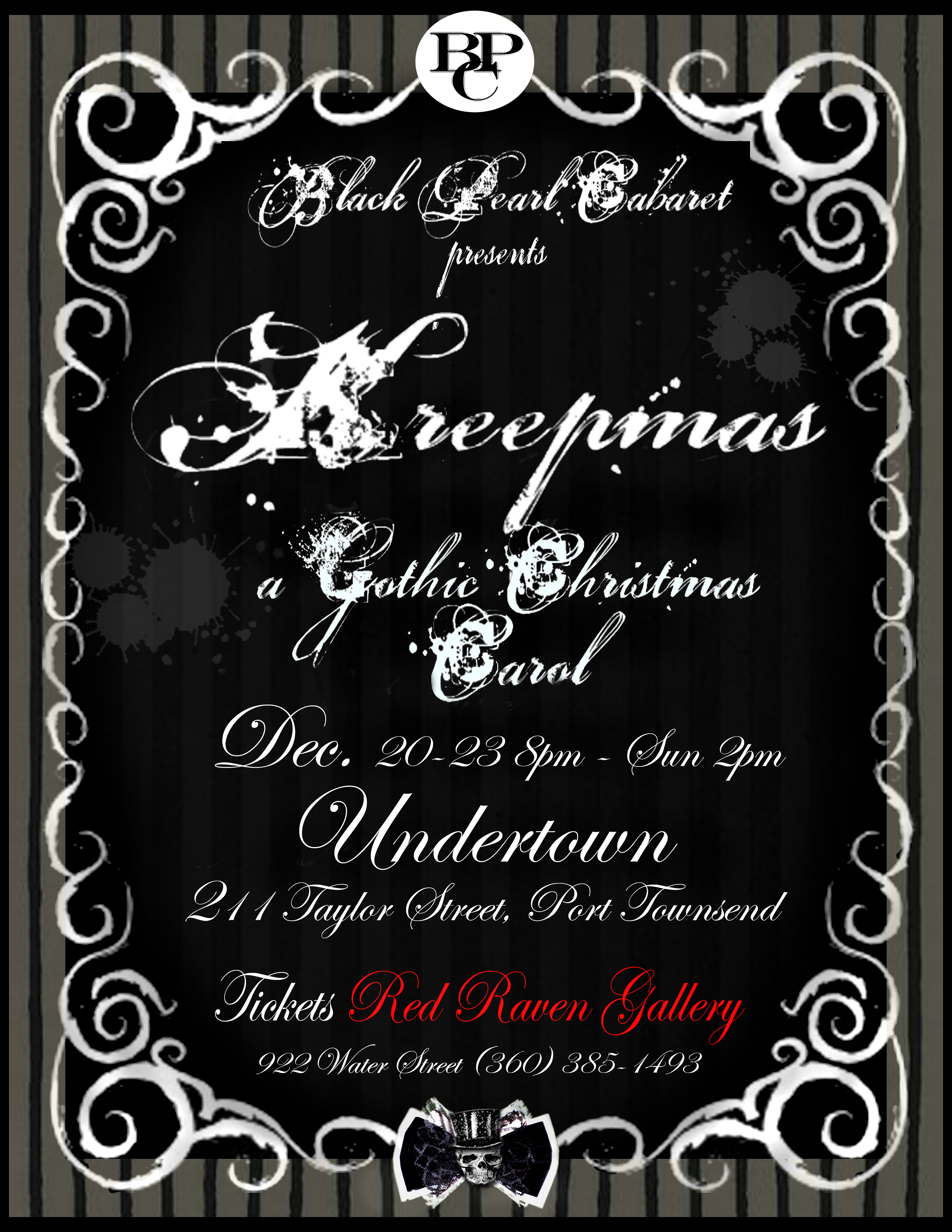 Presented by the Black Pearl Cabaret, KREEPMAS – A Gothic Christmas Carol’, with book, music, and lyrics by Brazillia R. Kreep, will play December 20-23, at the Undertown in Port Townsend, WA.. A Gothic retelling of the famous ‘Christmas Carol’ by Charles Dickens, KREEPMAS is a musical comedy in the tradition of Black Pearl’s sold-out Halloween offering AN EVENING WITH THE KREEP.